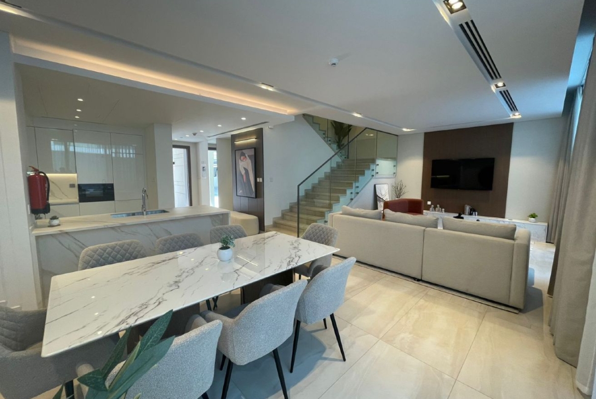Wake up to calming water views and enjoy your morning coffee on the sun-lit balcony, the perfect spot to relax and unwind. The villa features a fully equipped modern kitchen with high-quality appliances, ideal for both everyday cooking and entertaining. Built-in wardrobes provide ample storage, while the central air-conditioning system ensures consistent comfort throughout the home.